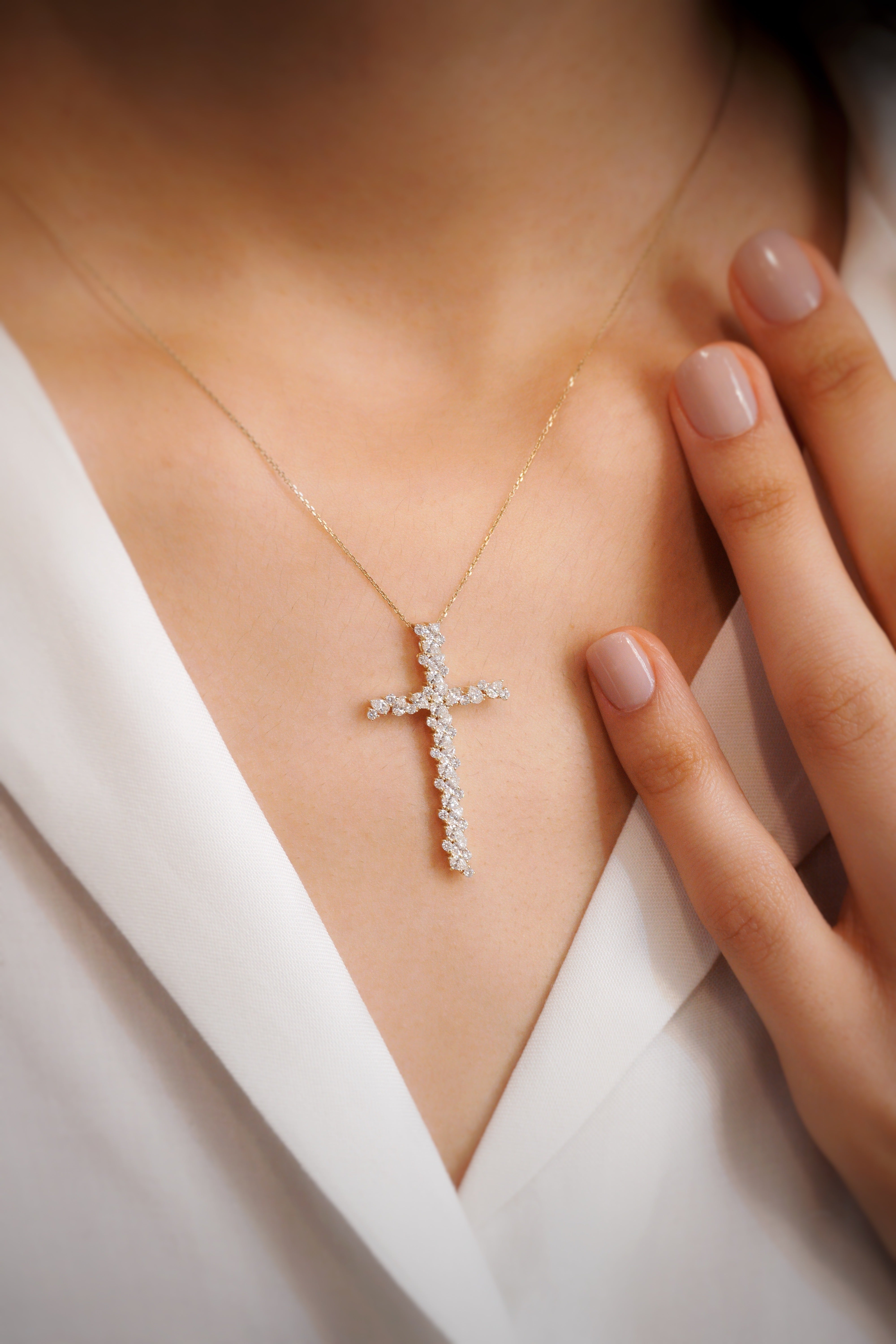 ბრილიანტის ჯვარი წვეთის ფორმის ბრილიანტებით, რომელიც გულგრილს არავის დატოვებს.