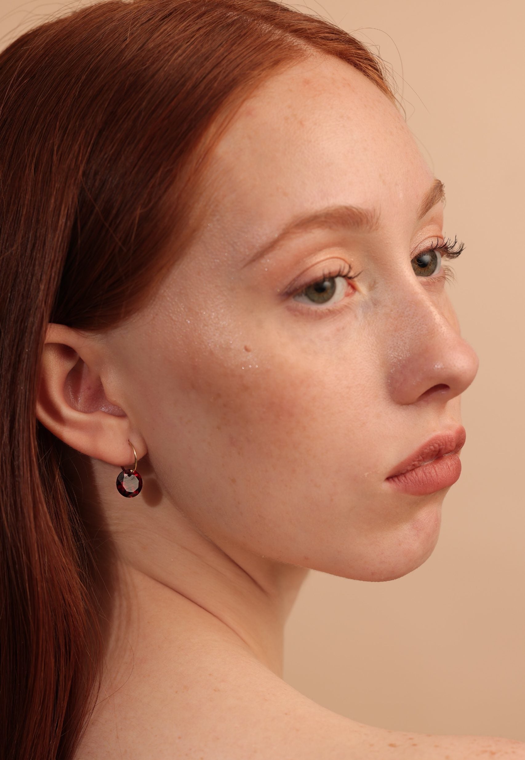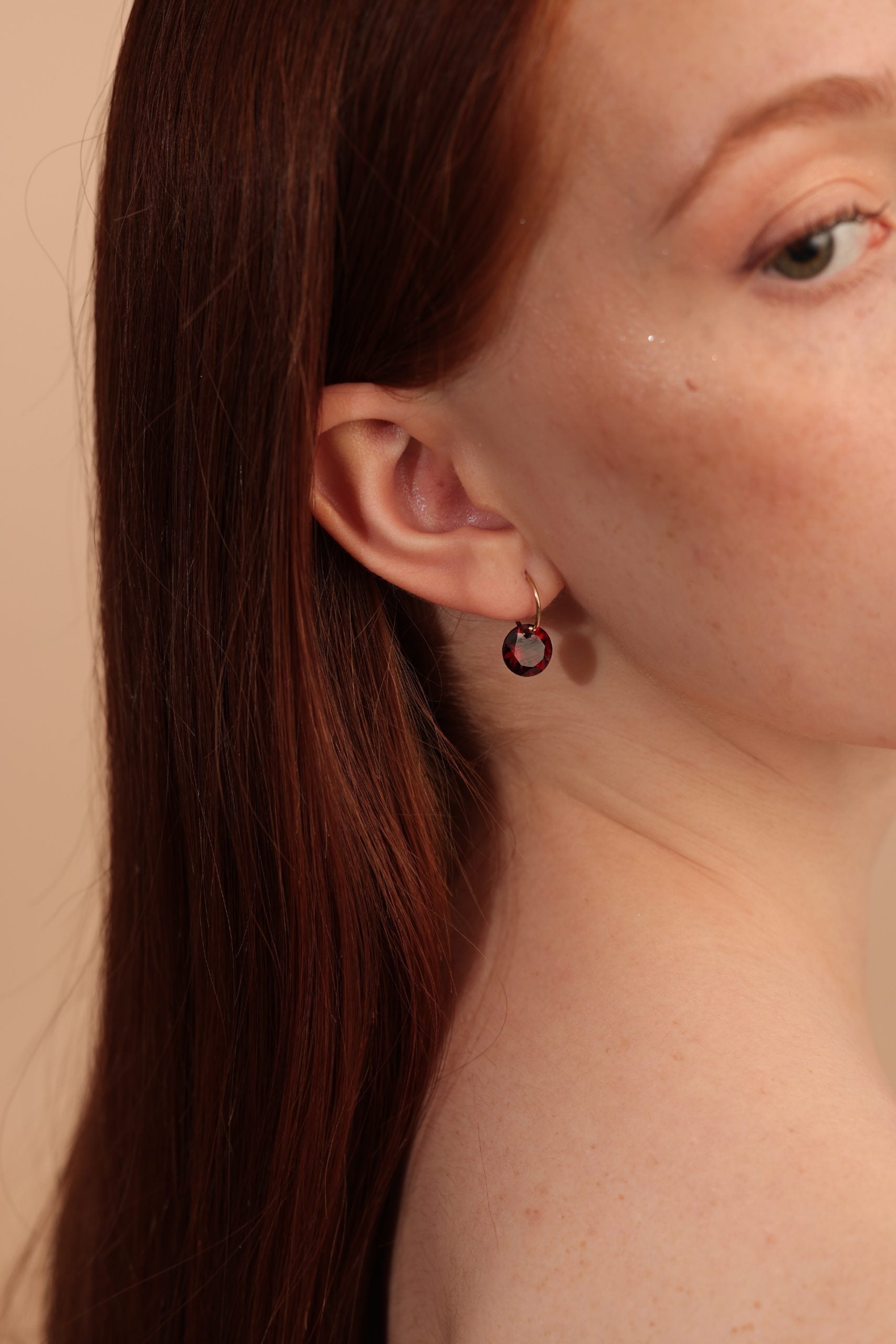 Drilled Garnet Hoop Earrings