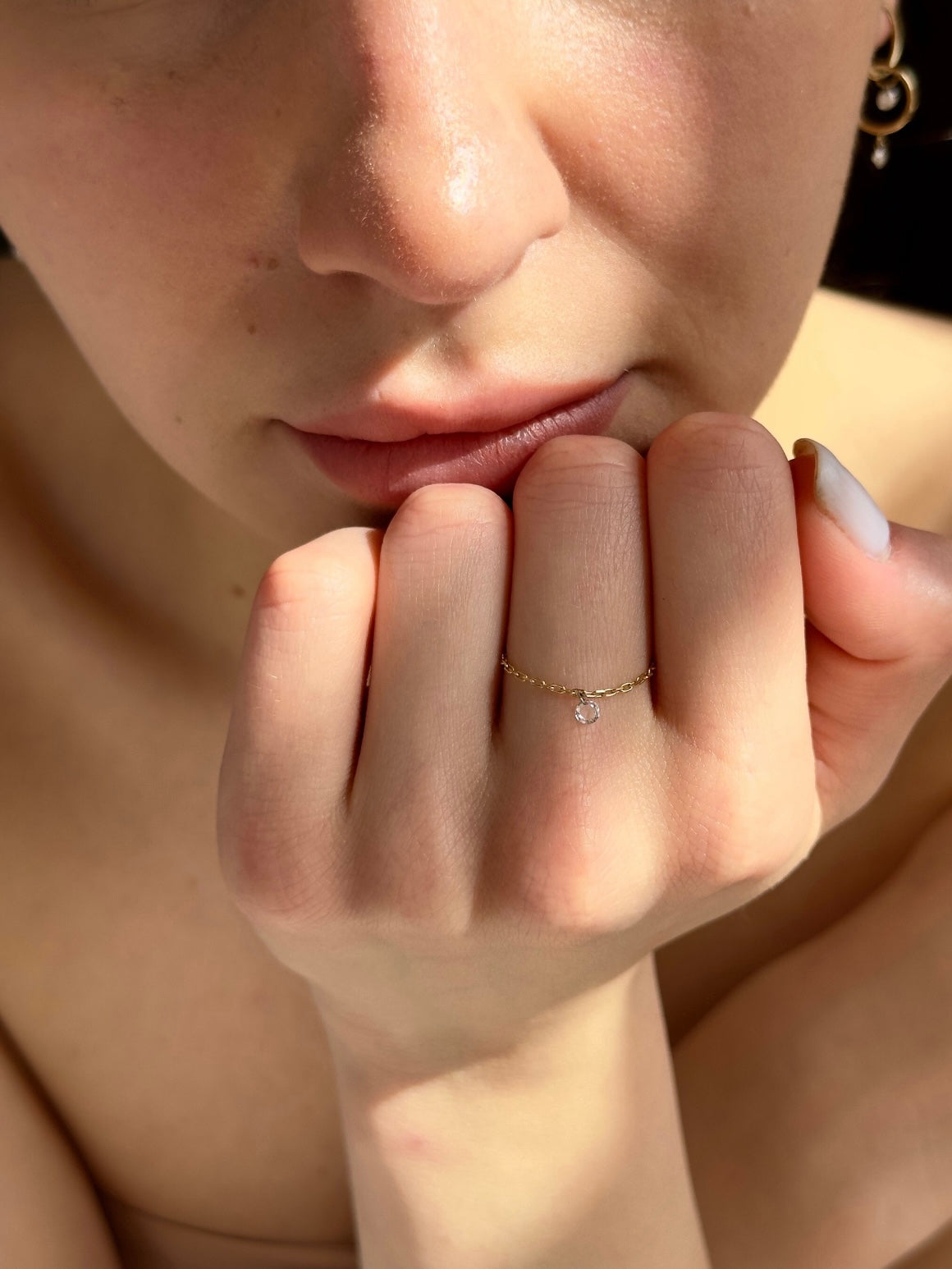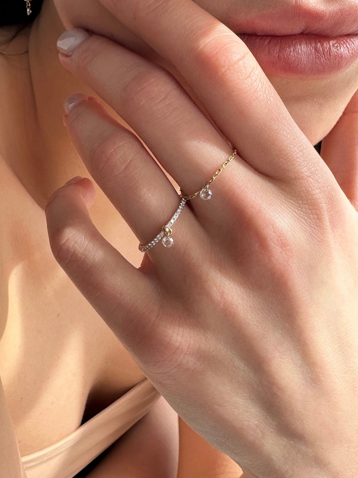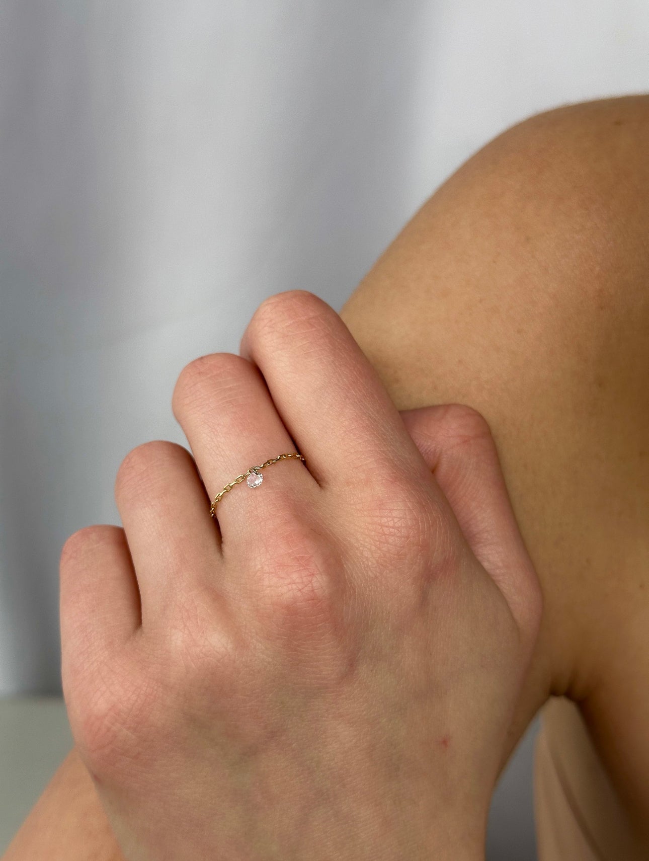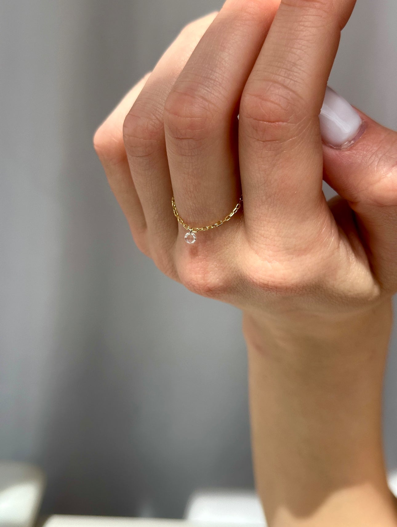 Floating Set Free Rose Cut Solitaire Diamond Ring