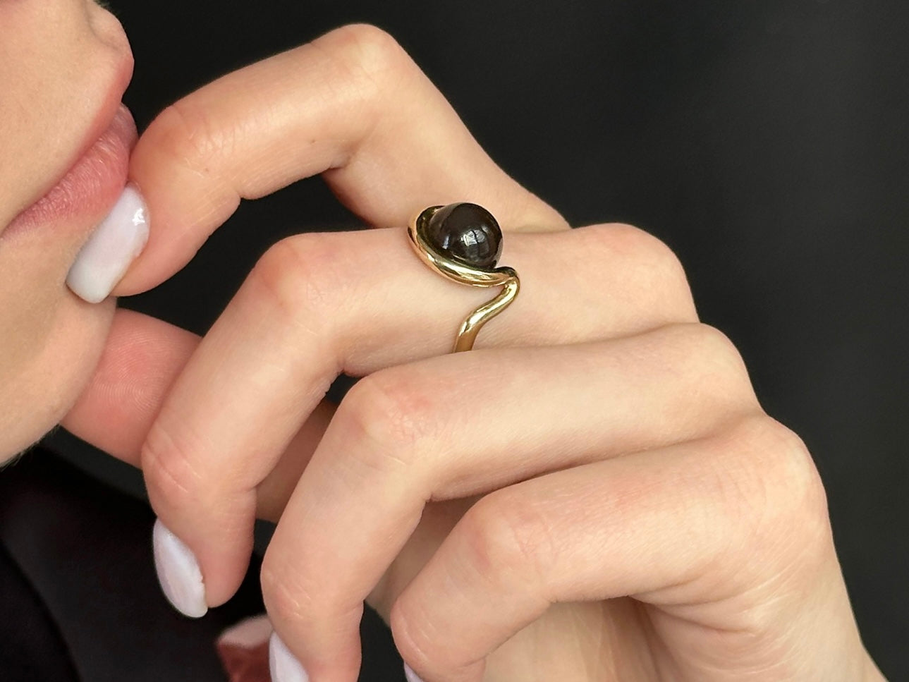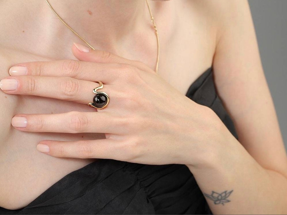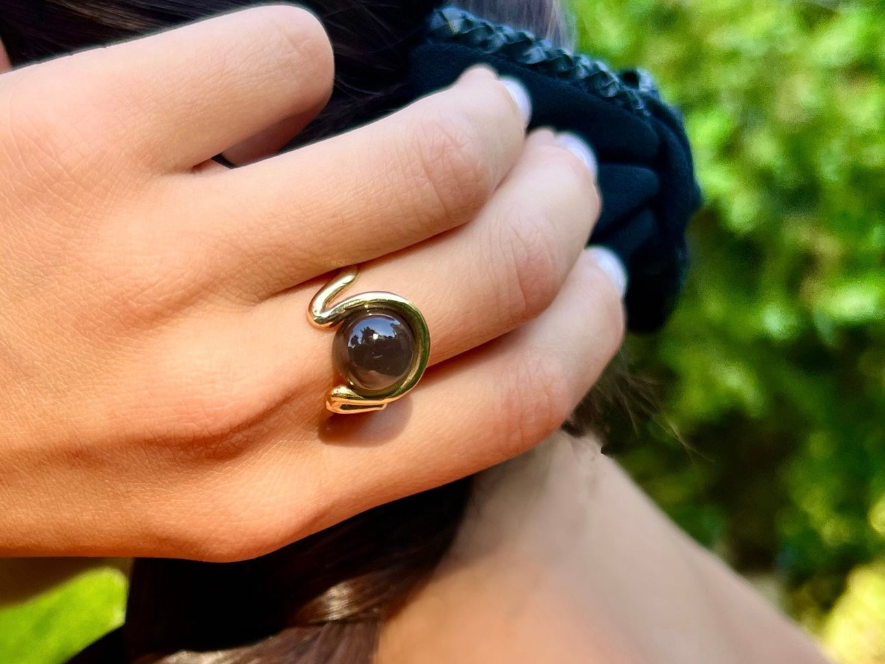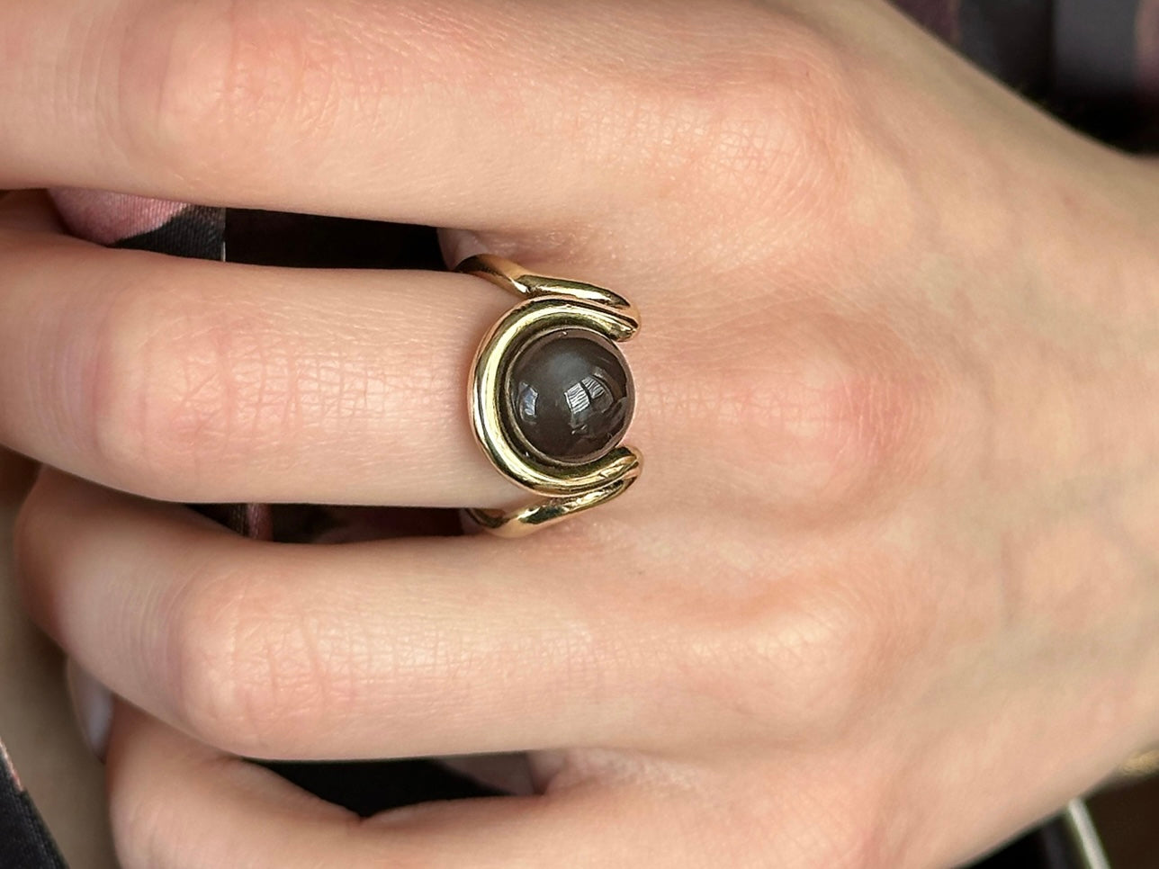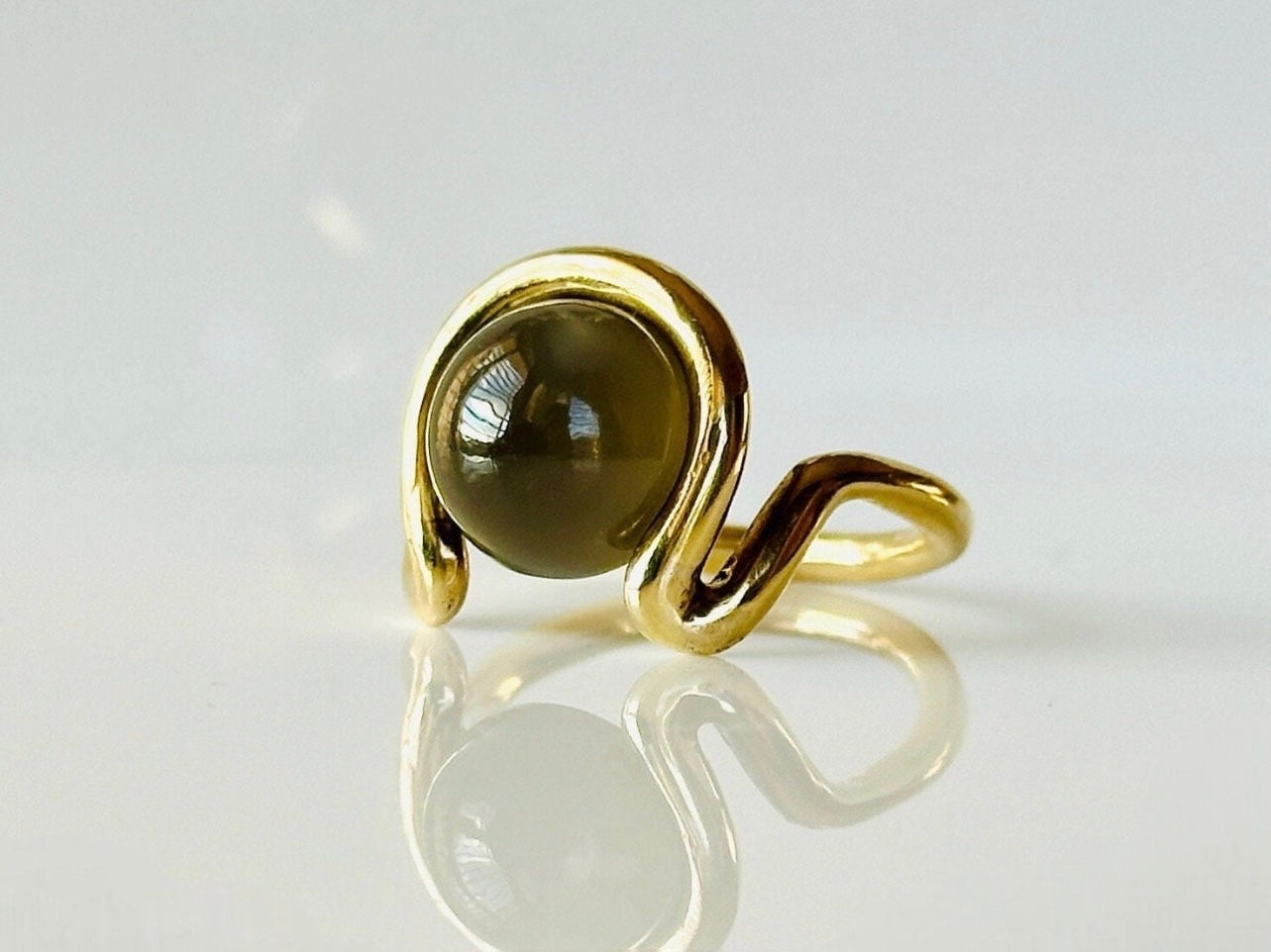 Grey Moonstone Open Wave Ring