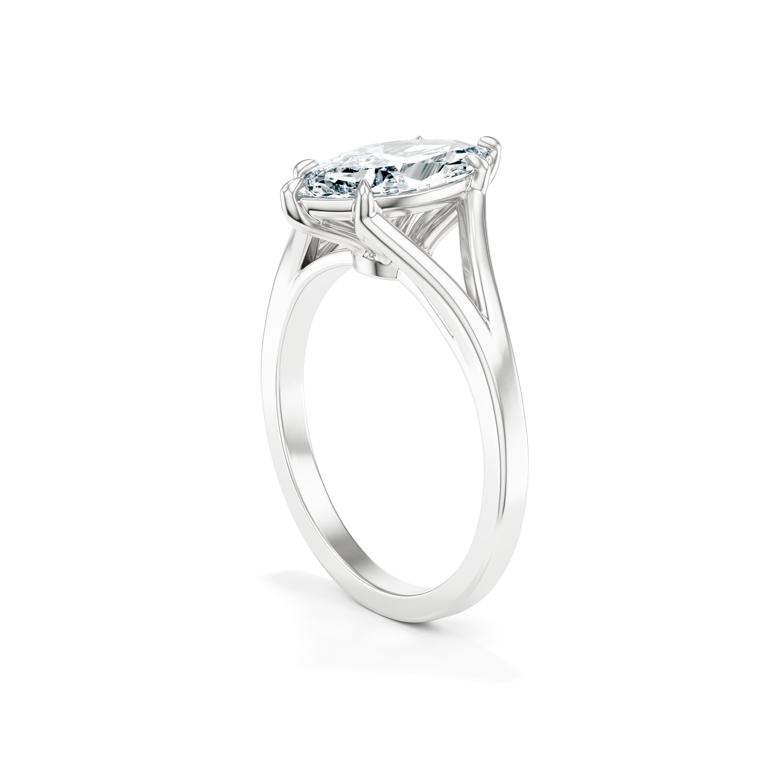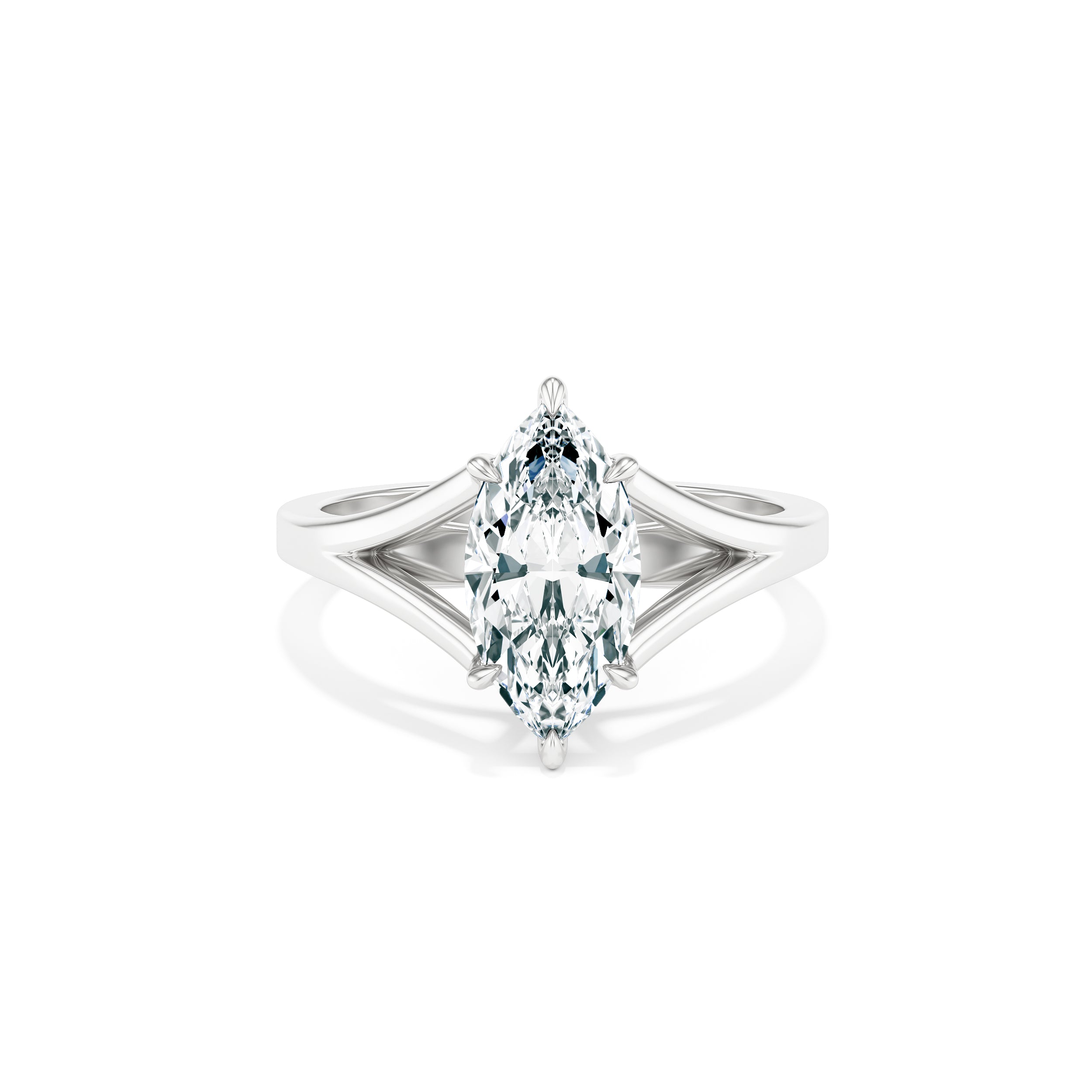 A grand silhouette with timeless elegance - The Martha Cathedral Ring features a striking 3.00 carat marquise-cut diamond elevated in a graceful cathedral setting, drawing the eye upward and amplifying its natural brilliance.