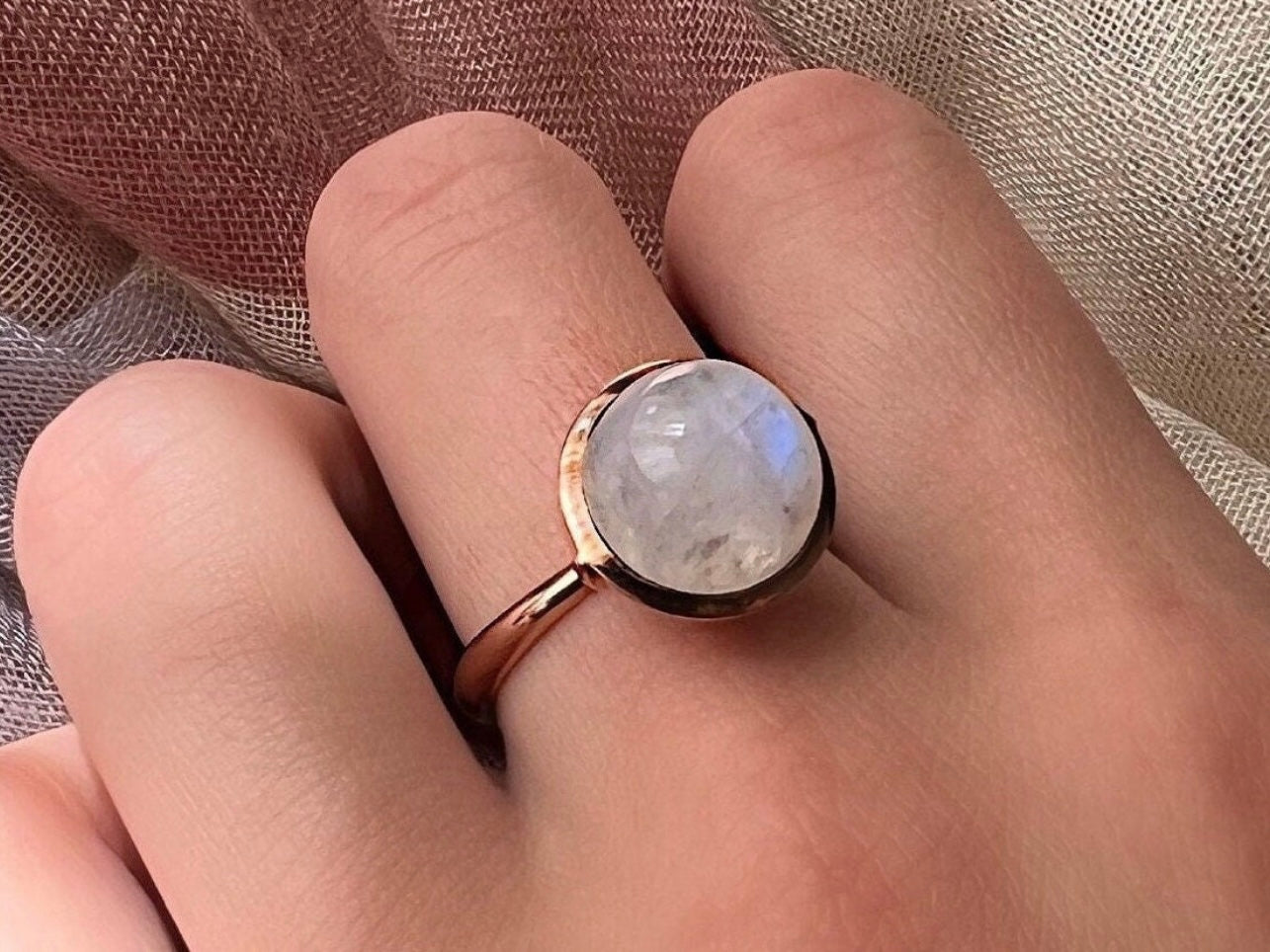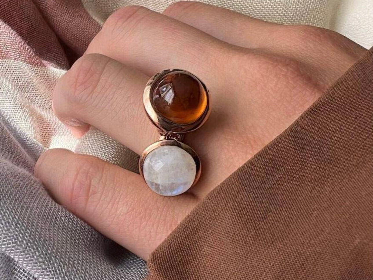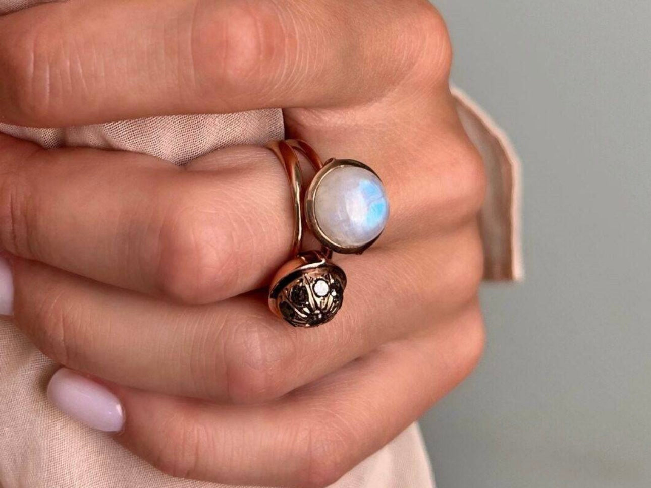 Rainbow Moonstone Large Sphere Ring