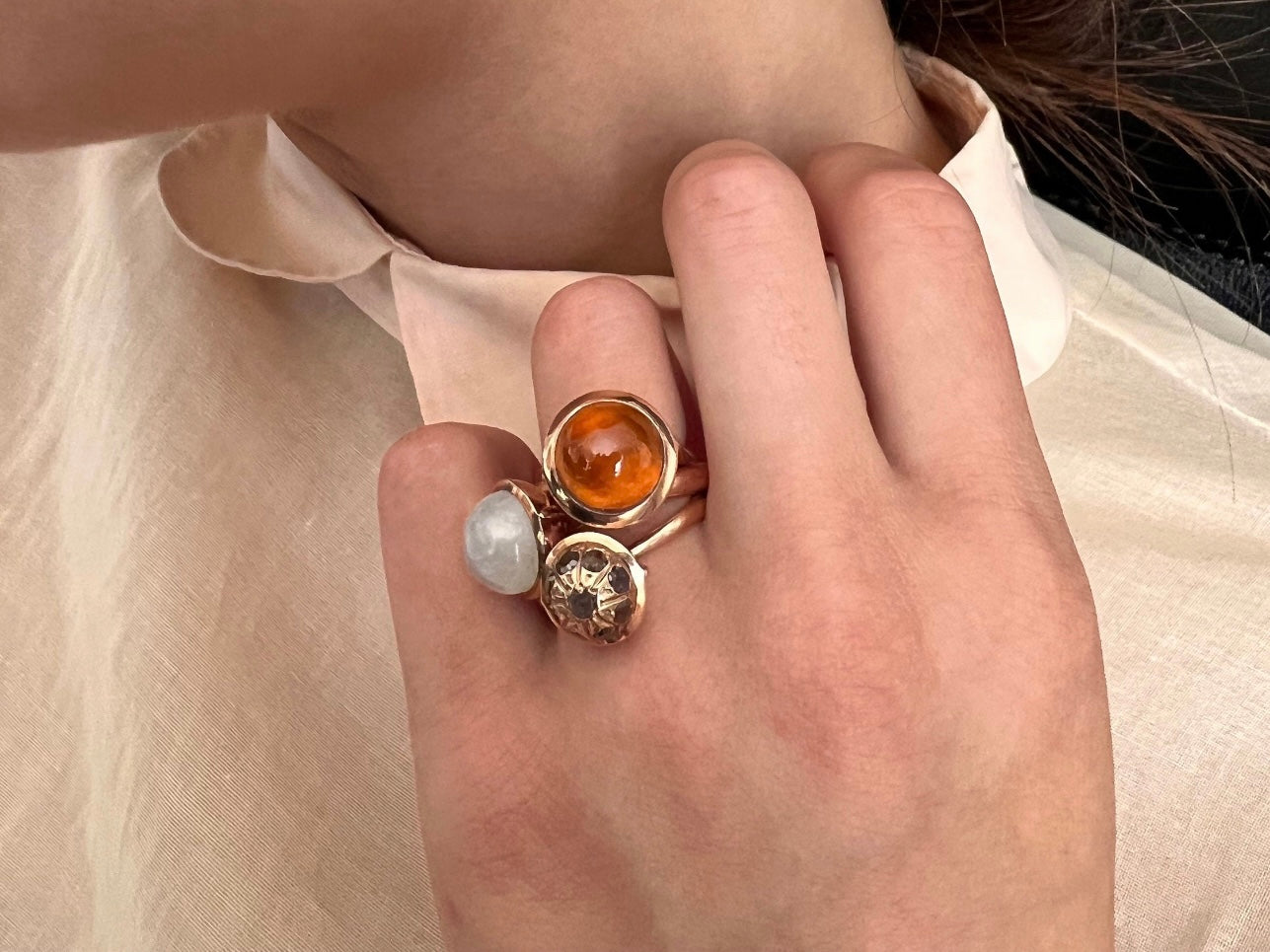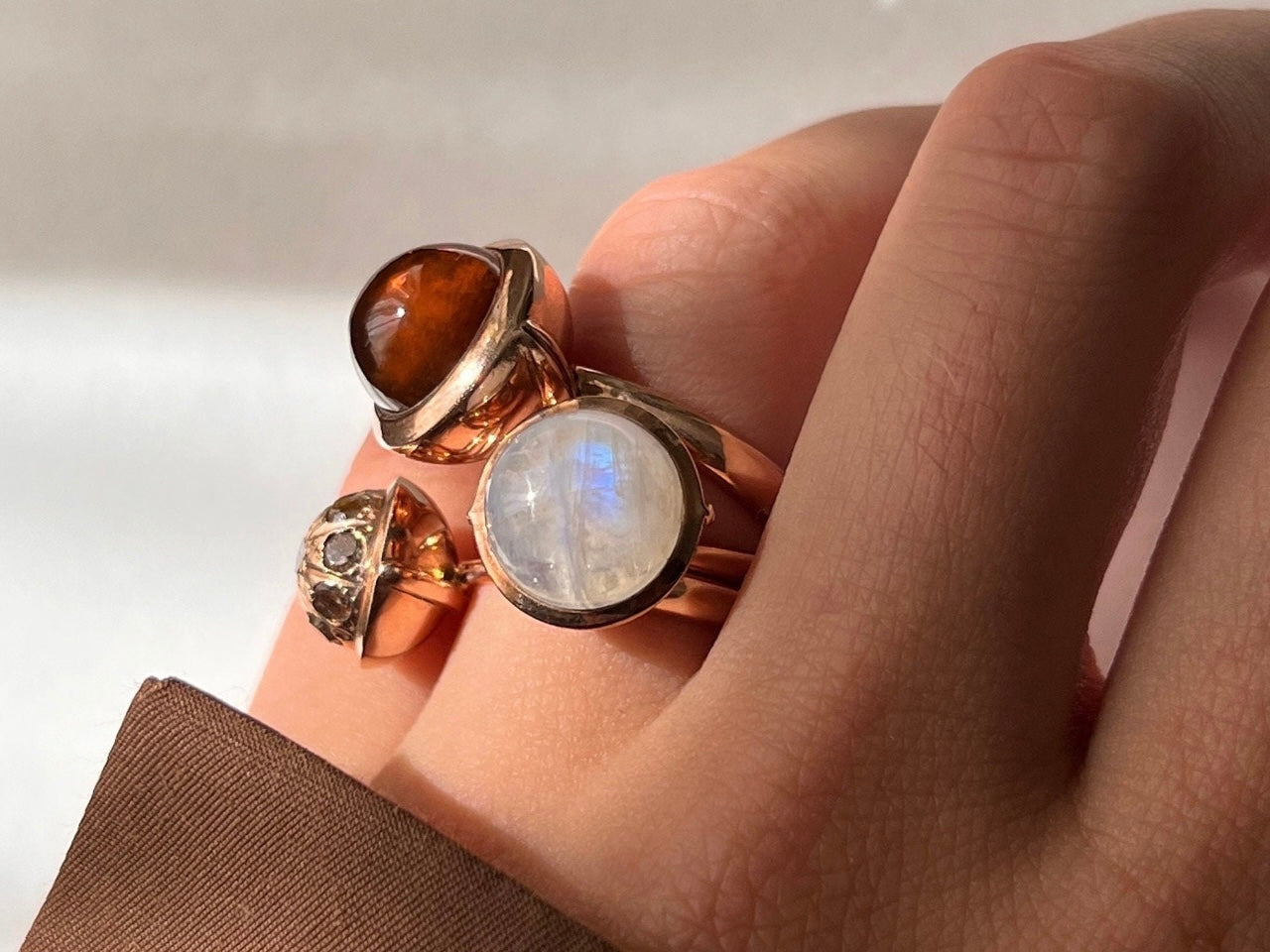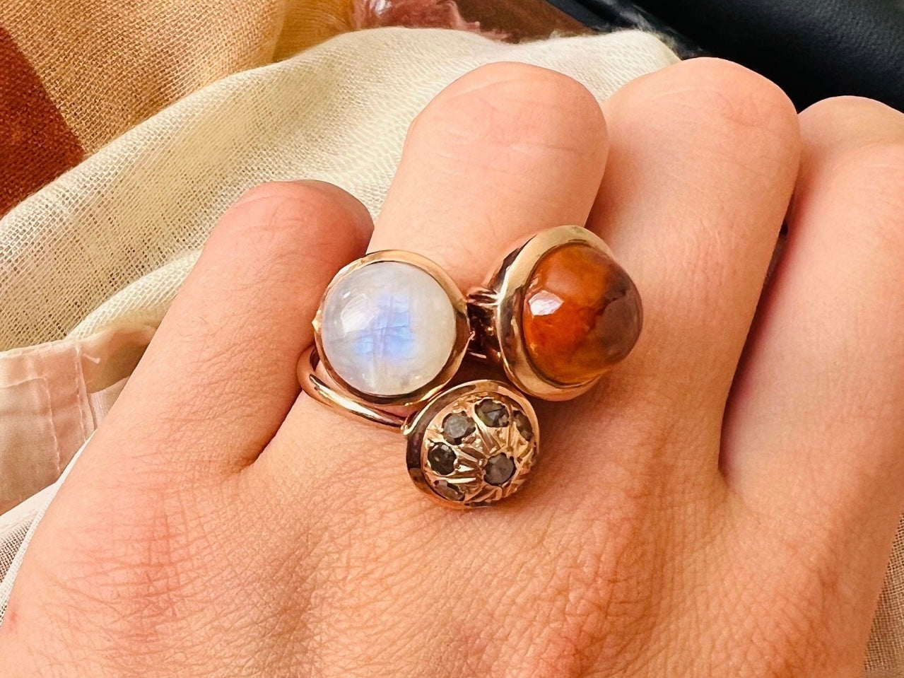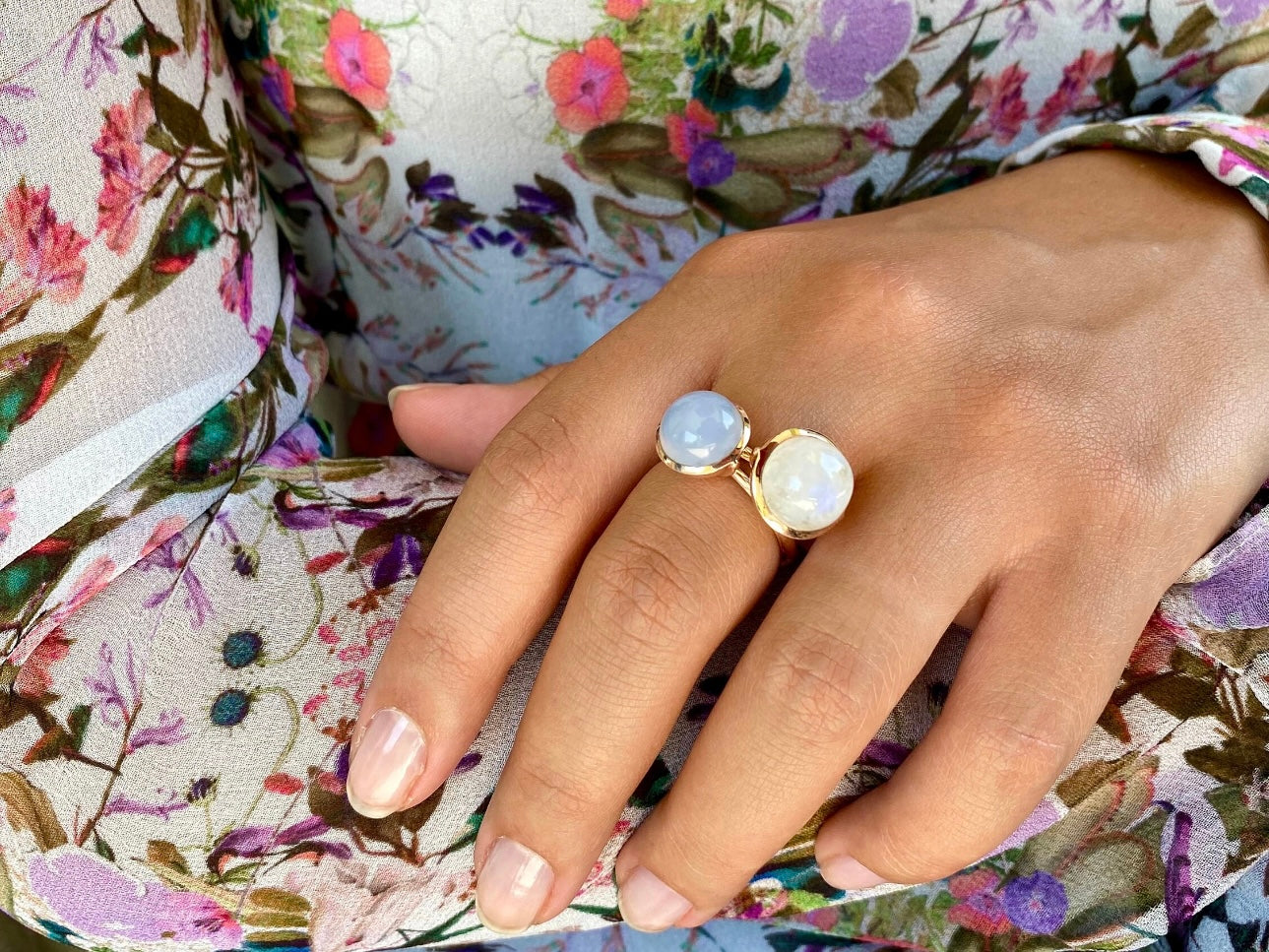 Rainbow Moonstone Large Sphere Ring