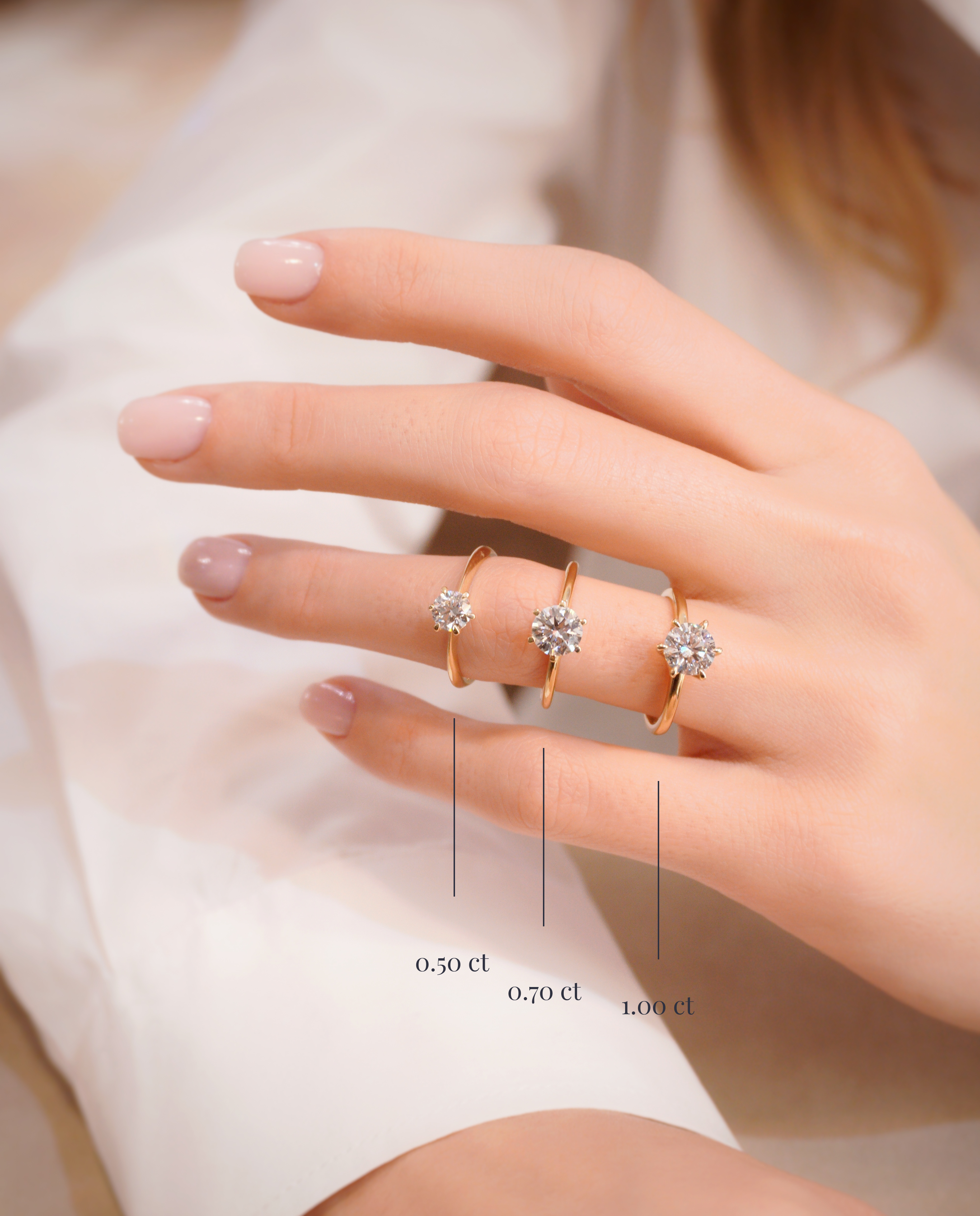The Regina Engagement Ring features a round-cut diamond set in six refined prongs, giving the centre stone a perfectly balanced, classic look. Paired with a smooth gold band, the design feels effortlessly elegant and enduring—one of our most beloved rings for good reason. A true timeless beauty.