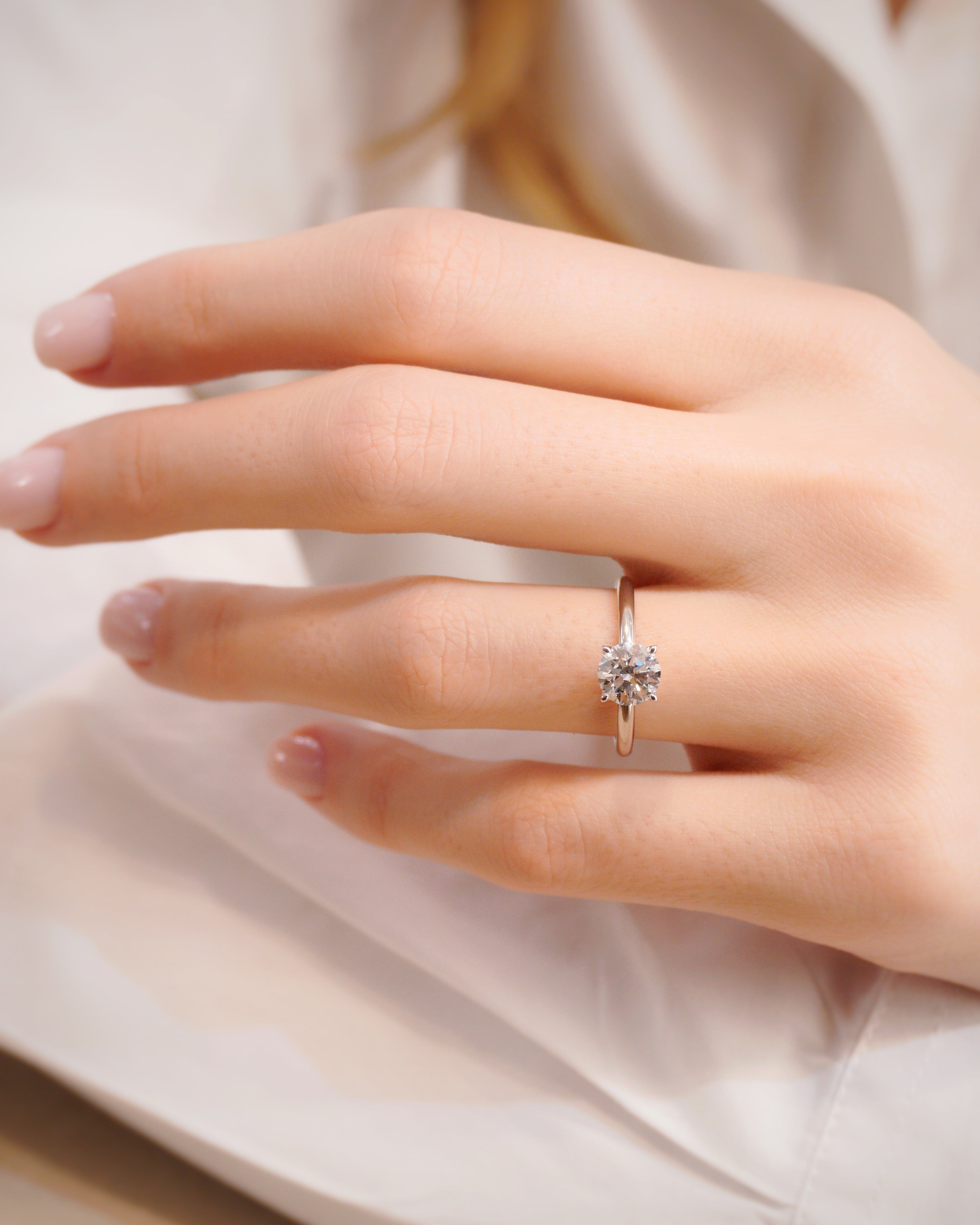 The Ria Engagement Ring showcases a 1.00 carat round diamond held in four refined prongs, letting the stone take centre stage with effortless brilliance. Its simple, polished silhouette embodies everything a classic ring should be: timeless, graceful, and endlessly wearable. Ria is the definition of enduring beauty.
