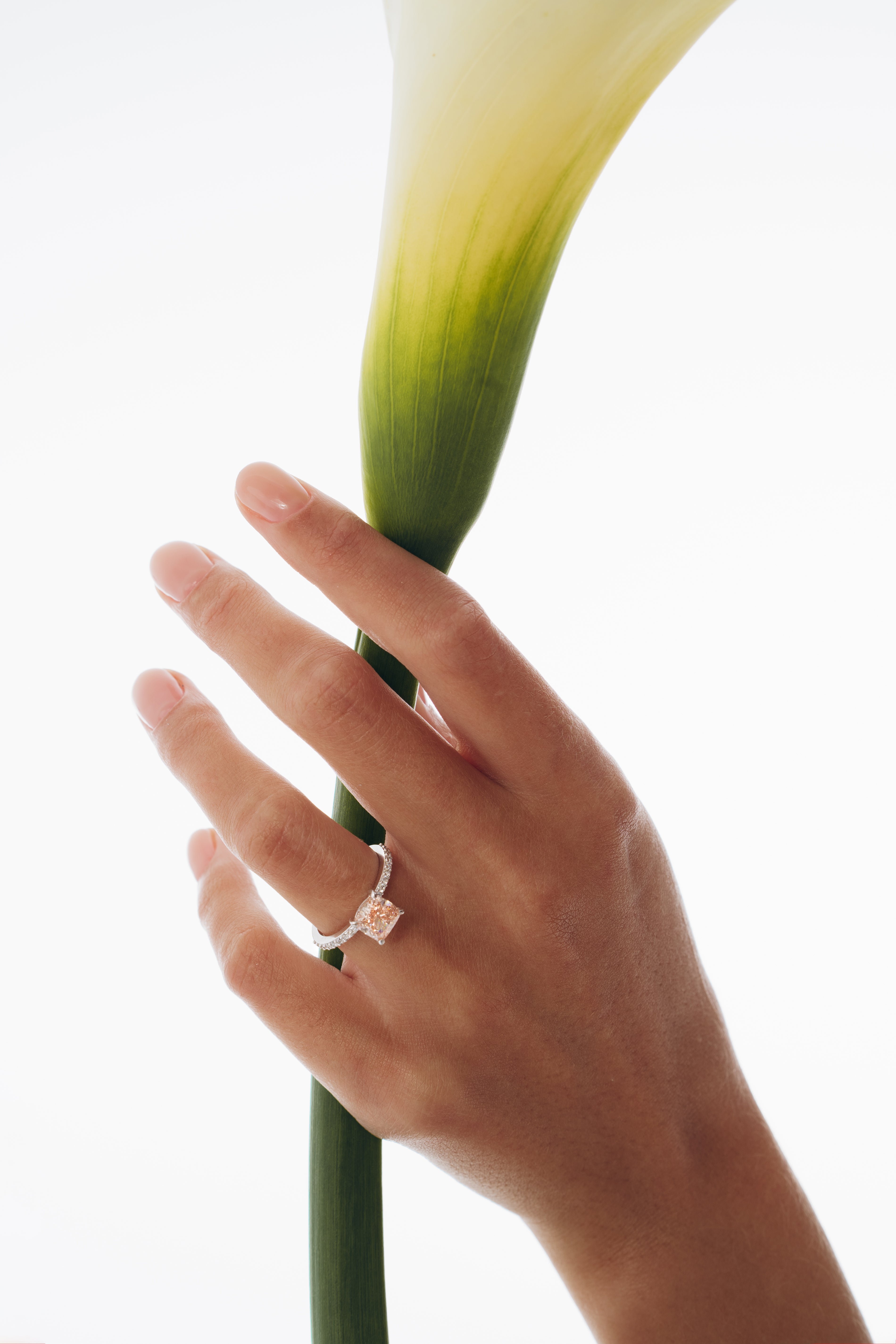 The Tina Engagement Ring centres a breathtaking cushion cut 1.74 carat fancy vivid pink lab diamond, glowing with rare, feminine radiance. A pavé-lined band adds a soft shimmer that enhances the stone’s delicate hue and refined brilliance. Elegant, romantic, and undeniably special—this ring is a poetic celebration of love in its most luminous form.