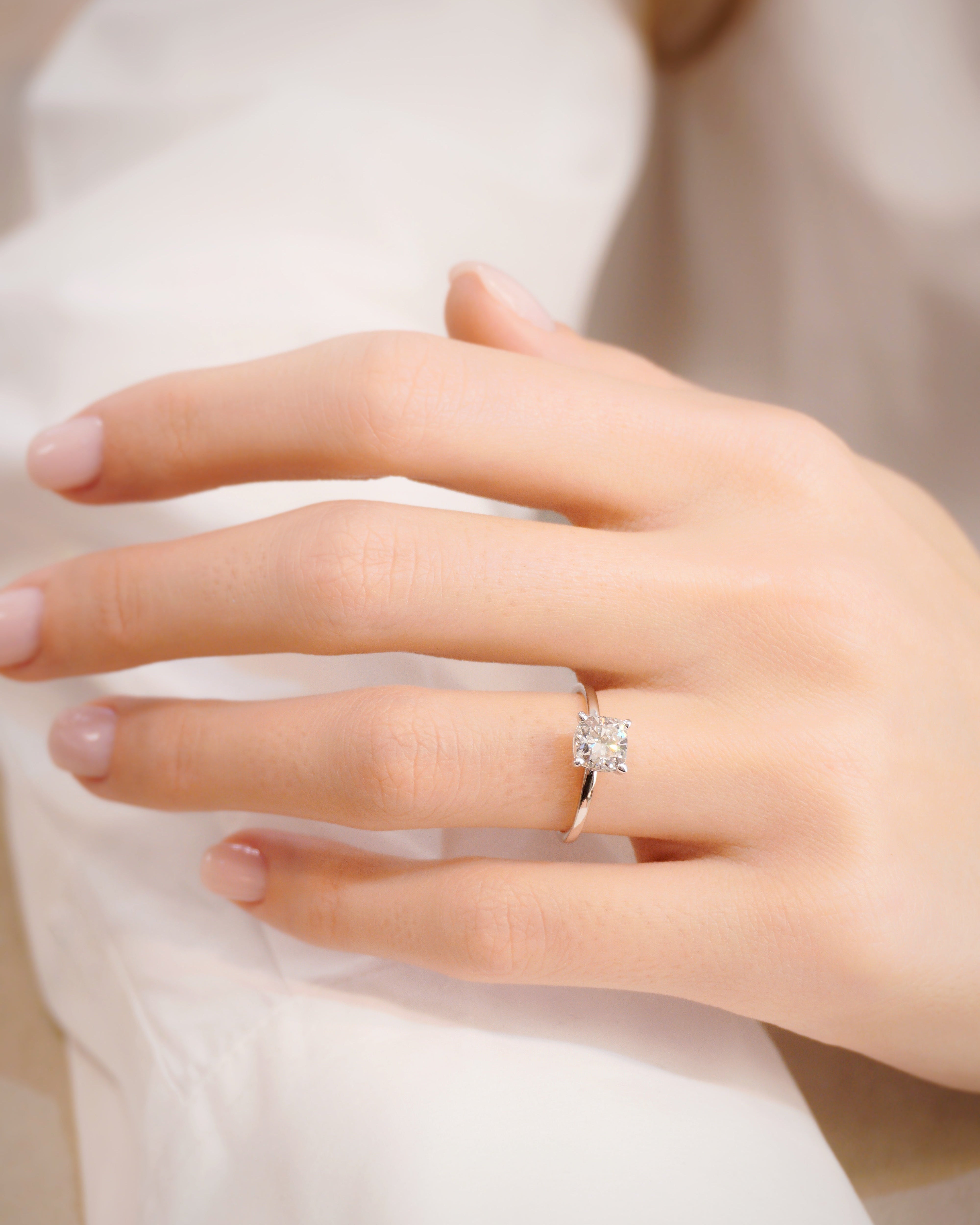 The Tina Engagement Ring features a 1.00 carat cushion-cut diamond set on a clean, simple band that lets the beauty of the stone speak for itself. With its gentle curves and balanced sparkle, the design feels timeless yet quietly modern. Elegant, understated, and effortlessly romantic—Tina is made for those who love classic beauty without excess.